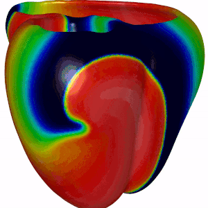 Mission · This project aims to explore how asymmetrically shaped scars in cardiac tissue affect the stability and breakup of scroll waves. Using state-of-the-art computational simulations, you will model scroll waves in 3D cardiac tissue and introduce scars of various shapes and sizes that you will systematically vary in size. Using our software you will investigate whether wave breakup occurs and multiple wavefronts emerge, forming "garlands" around the scar—earning the name Cardiac Christmas Trees. You will then relate the observed wave behavior to fundamental tissue properties such as Action Potential Duration (APD) –how long a cell stays excited– Conduction Velocity (CV) –how fast the wave travels through tissue–.